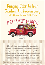 Join us at The Violet Fig with guest flower farmer, Sally Rech of Lancaster, Wisconsin. As a flower farmer in Wisconsin's brisk growing zone of 5a, Sally will share her strategies for maintaining vibrant, colorful gardens throughout the short growing season. She will address real-life gardening challenges and reveal the secrets of succession planting and design, helping you achieve a garden that's brimming with color and life from spring to fall. Sally's expertise and passion make her a valuable resource for anyone looking to enhance their gardening skills and create a beautiful, thriving garden.