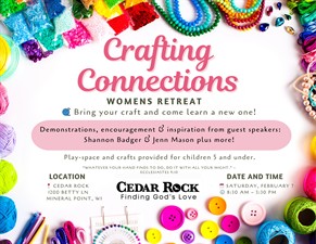 Mark your calendars, invite a friend, and come be part of Crafting Connections at Cedar Rock!