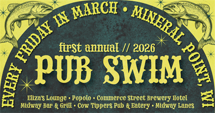 What is a Pub Swim? It’s a fun new event starting in March that's focused on going out and eating Fish Fry on Friday nights in Mineral Point. Oh, and there will be lots of prizes! And there'll be special "Pub Swim" themed drink specials available too!
